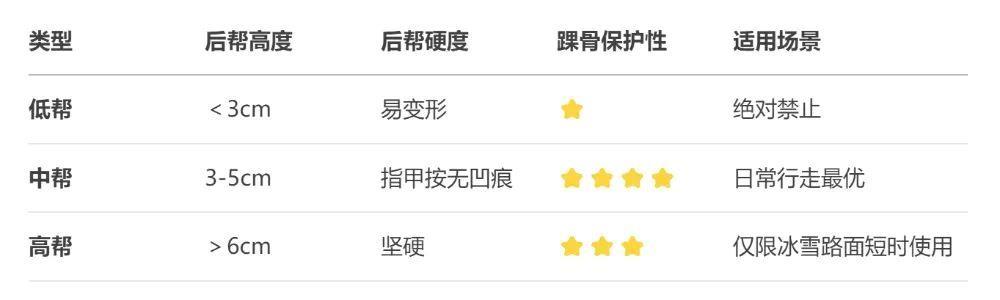 超高帮鞋会限制踝关节活动,被绊倒时更难调整姿势。而超低帮鞋是缺乏侧向支撑,使踝关节扭伤的风险激增。