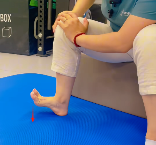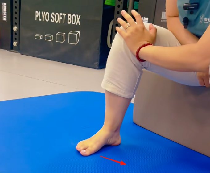 ▶ 以脚跟为轴,模仿雨刷器,大脚趾球贴紧地面向对侧滑动,感受足弓撑起