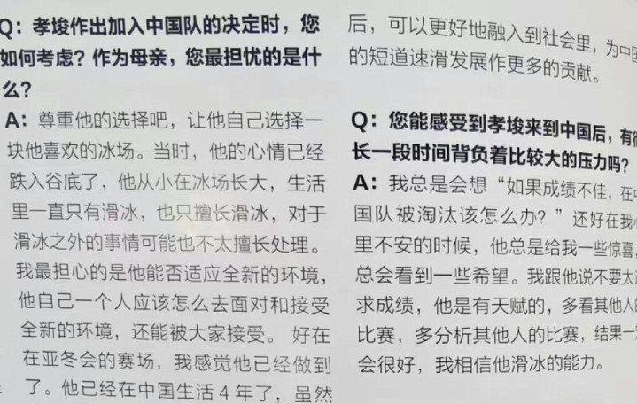 当被问及当年儿子作出离开韩国、加入中国国籍这个足以改变命运的重大决定时,她作为母亲最真实的第一反应是什么,郭多妍的回答朴素而伟大,她说,作为母亲,最大的考量并非国籍的变迁,而是儿子的快乐与前途,“尊重他的选择吧,让他自己选择一块他喜欢的冰场。”