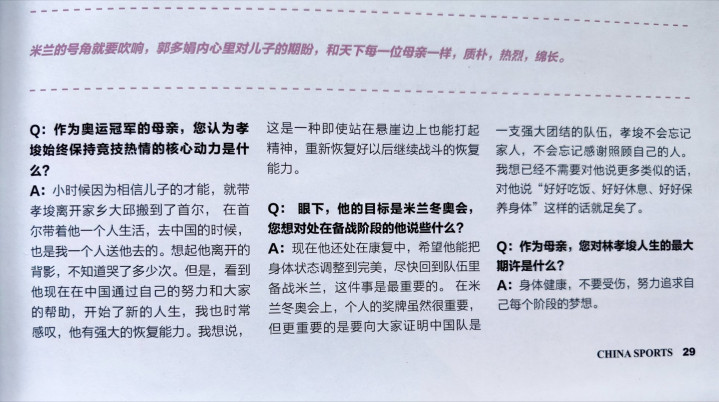据了解,这份采访虽在近期公布,但实际上完成于米兰冬奥会开幕之前,彼时,林孝埈正历经重重磨难,带着满身伤病向着自己的第二届冬奥会发起冲击,面对镜头,林妈妈的眼神里满是心疼,但更多的是坚定不移的支持