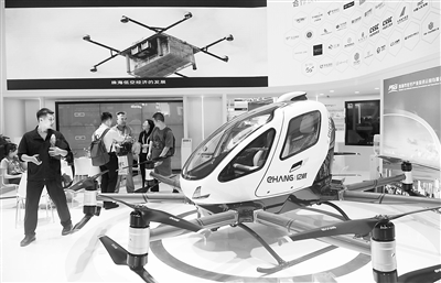 图为在第十五届中国国际航空航天博览会上展示的无人驾驶载人航空器。 新华社记者 卢汉欣摄