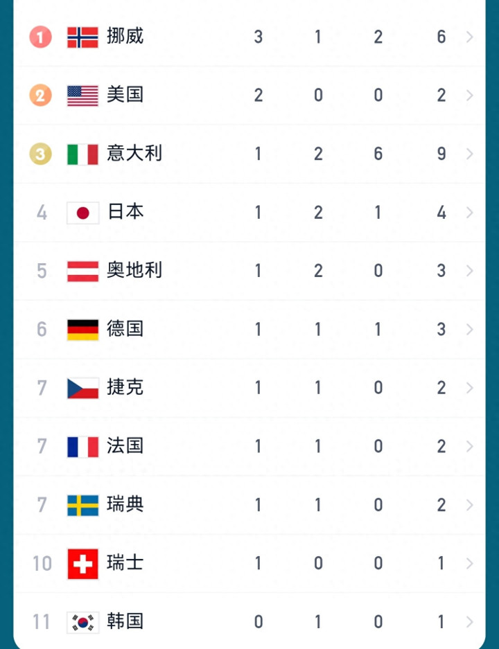 排在第一的是挪威队,他们已经获得3金1银2铜,其中第2日获得两金,分别是男子5000米速滑与越野滑雪男子20公里双追逐。不知道本次冬奥会,谁能够阻挡挪威继续金牌榜第一。